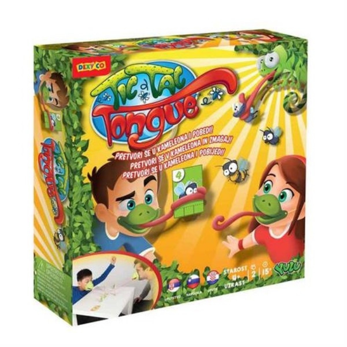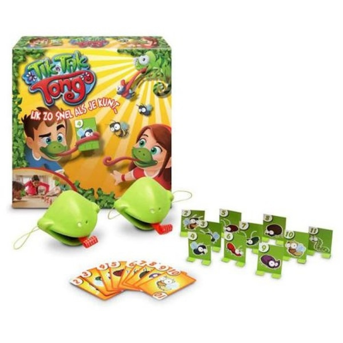 Maskeyi ve bukalemun dilini koyun, kartları masanın ortasına yerleştirin ve takım arkadaşının karşısında oturun.