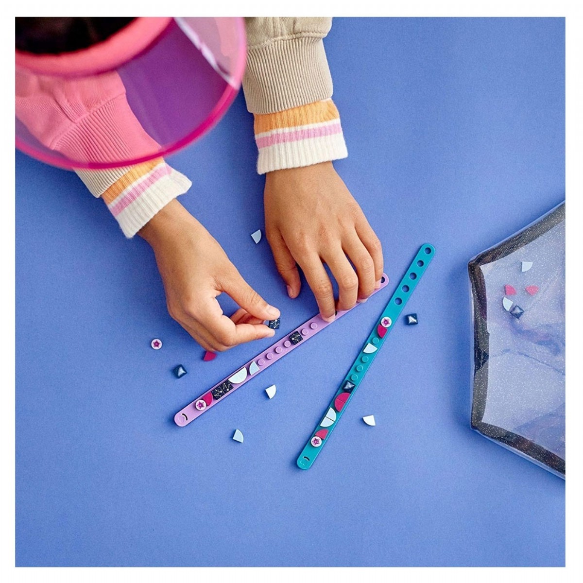 Sihir, gizem ve yıldız severler bu LEGO DOTS Yıldız Işığı Bileklikleri (41934) setiyle tasarım yapmaya bayılacak! Bu yaratıcı oyuncak setinde büyük küçük her bileğe uygun, açık yeşil ve mor renkte 2 adet ayarlanabilir ince bileklik ile birlikte özel, yuvarlak, yarı saydam yıldız parçaları ve yıldız haritası baskılı parçalar dahil 32 renkli DOTS parçası bulunur.