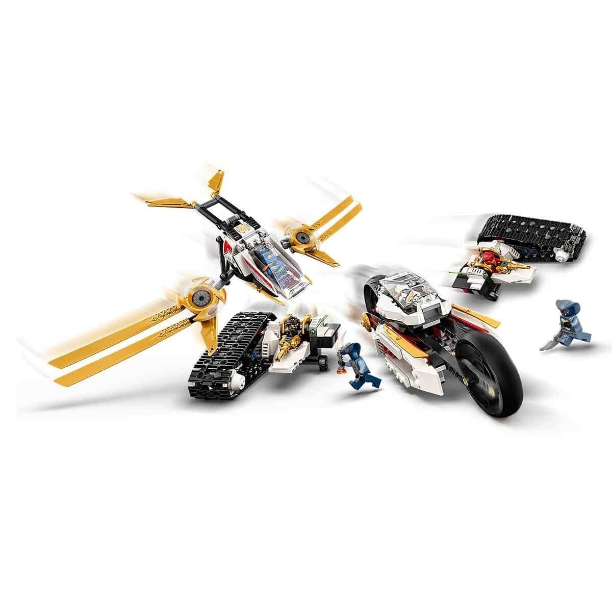 Çocuklar Rattla’ya ve çalışan oyuncak mancınığına karşı heyecan verici savaşlar yapmak için muhteşem ninja motosikletini kullanabilir.