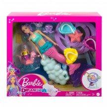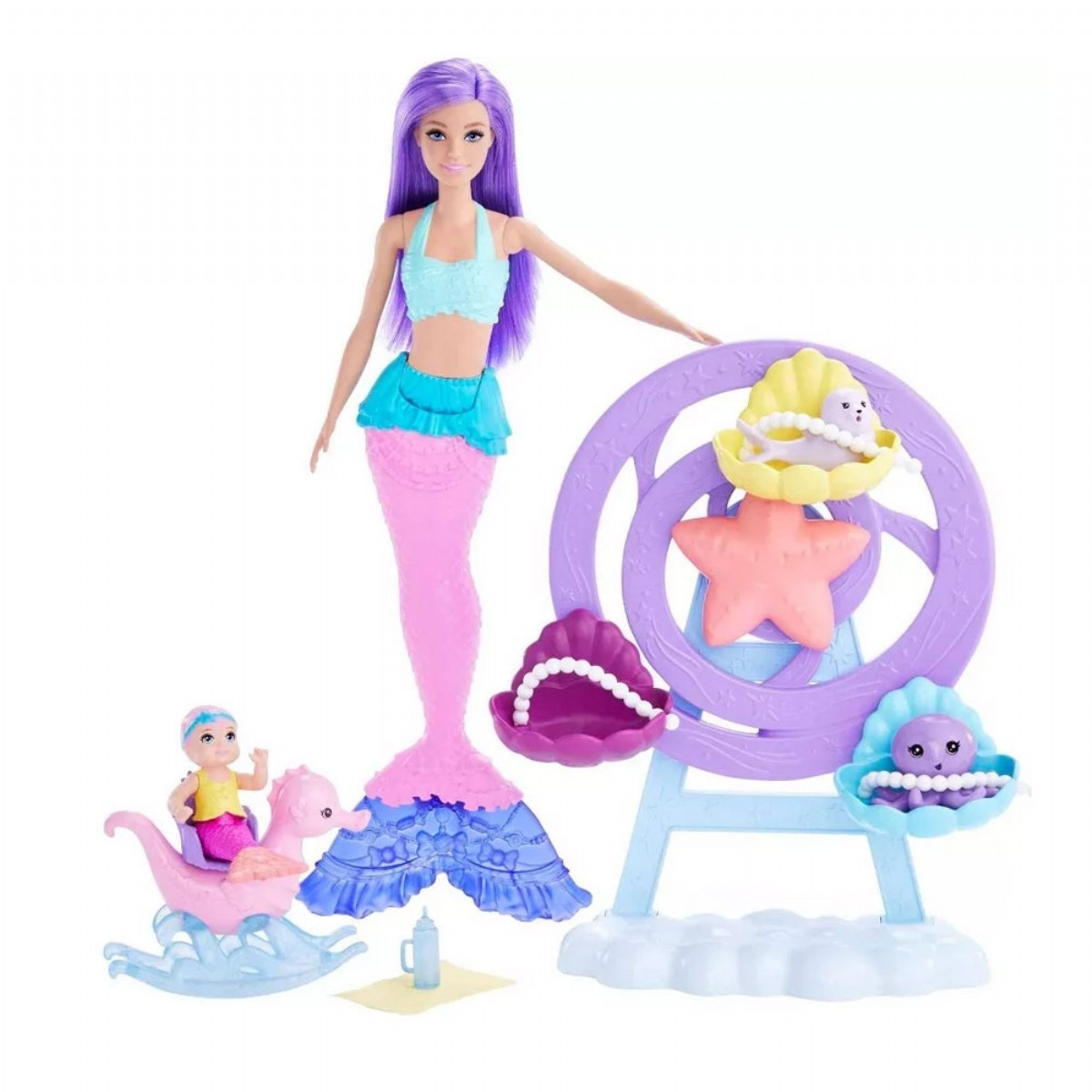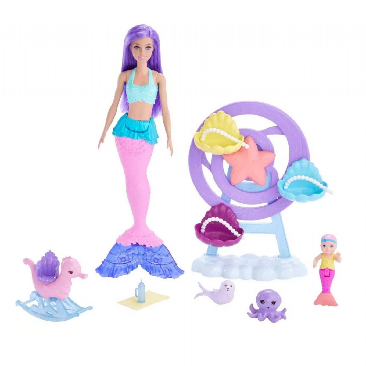 Klasik emzirme oyununa sihirli bir dokunuş katan bu fantezi setinde Barbie bebeğin deniz bebeği, yavru fok ve yavru ahtapotla ilgilenmesine yardım edin.