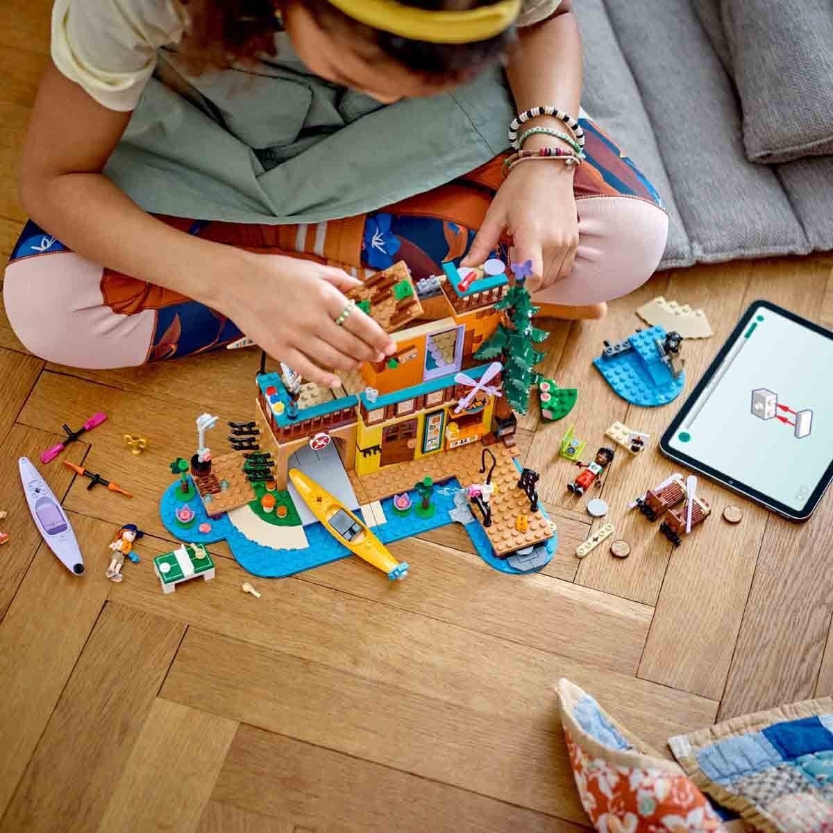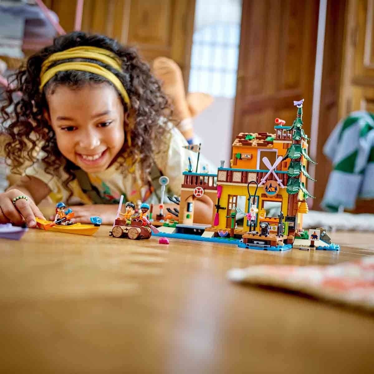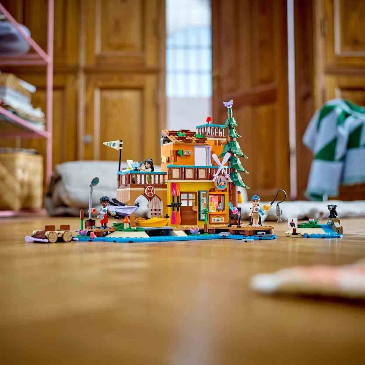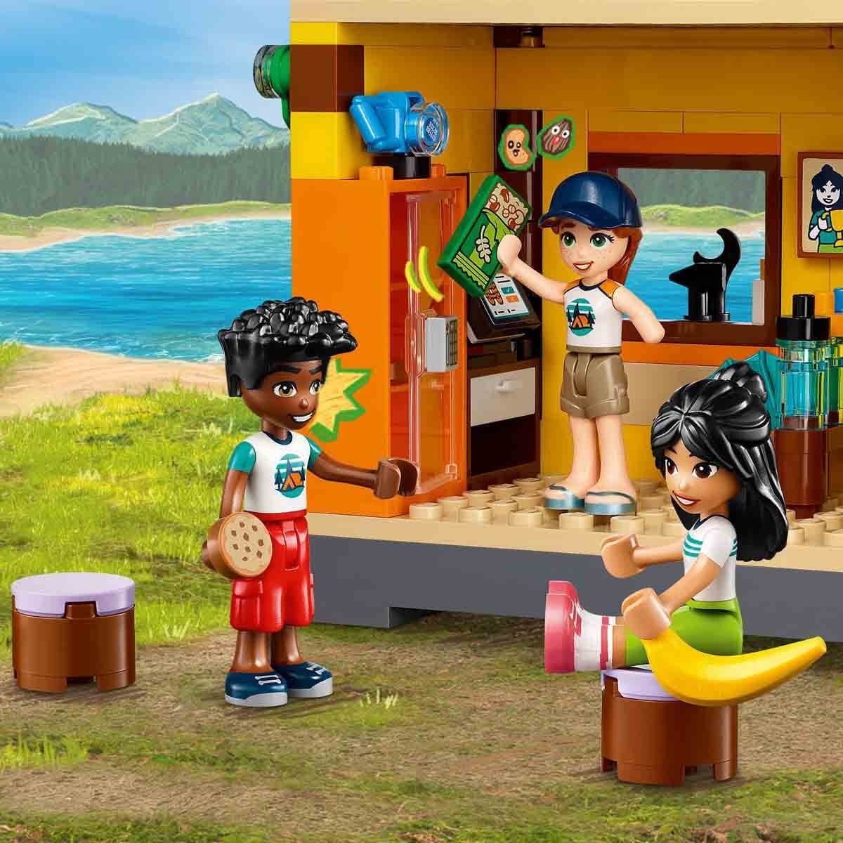 Bu LEGO Friends seti, sınırsız hikaye anlatımı olanağı için aksesuarlarla doludur. Macera kampının içinde ekipman kiralama, atıştırmalıkların olduğu bir buz dolabı, duş, ilk yardım çantası, kupalar ve daha fazlası bulunur. Eğlenerek geçirilen bir günün ardından arkadaşlar, dinlenme alanında vakit geçirebilir ya da masa tenisi oynayabilir.