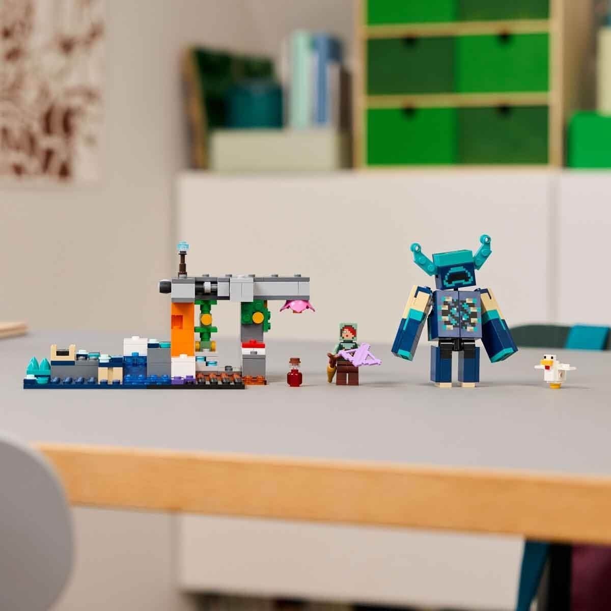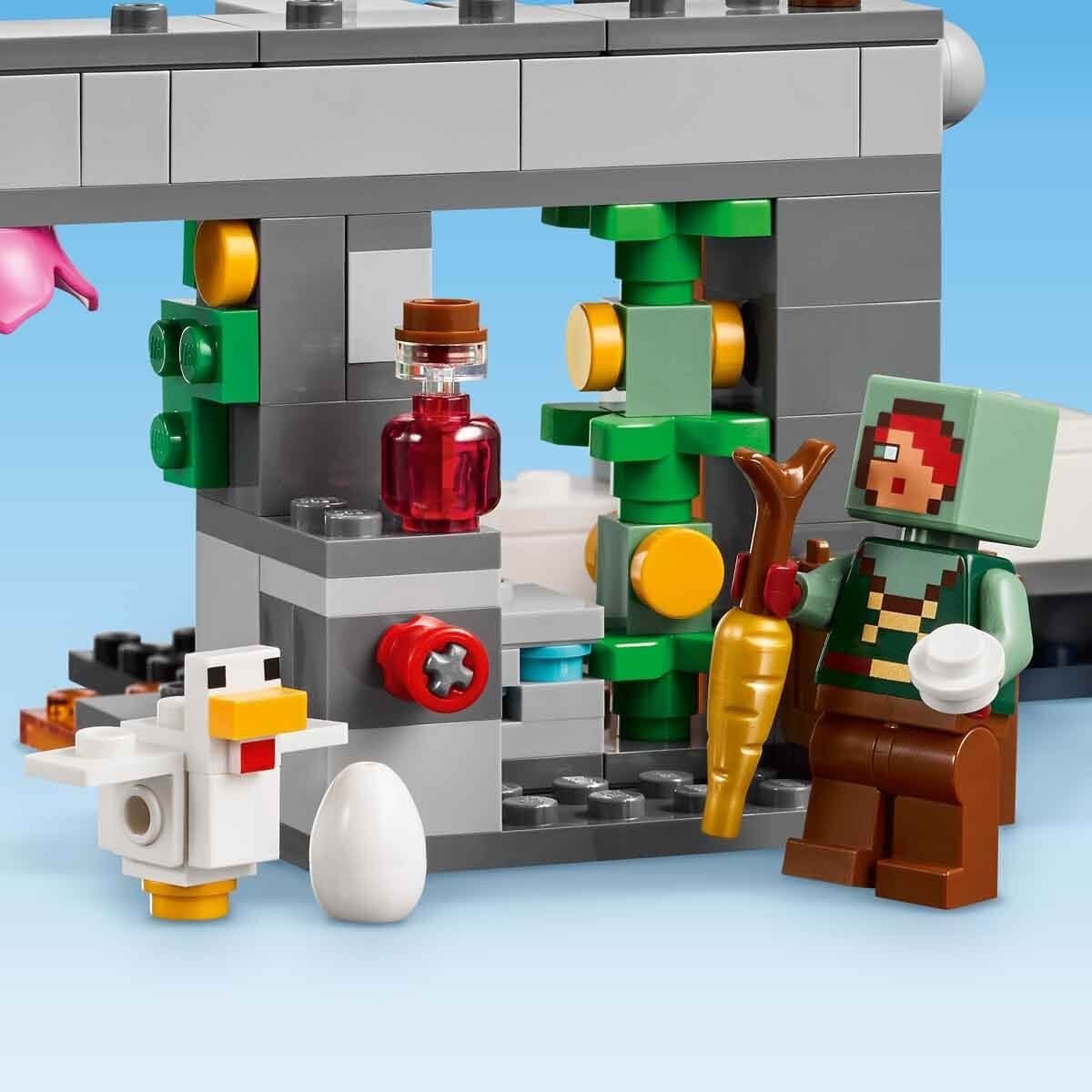 • Minecraft oyuncak figürleri; Bu LEGO setinde bir Minecraft Sessiz Korucu mini figürü, bir Minecraft tavuğu ve başı, kolları ve bacakları hareket edebilen, inşa edilebilen büyük bir Minecraft Bekçi figürü bulunur.