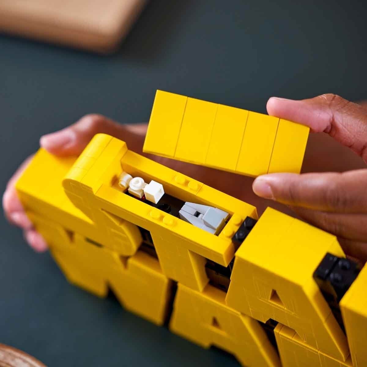 Hayranlığınızı doya doya yaşayın, kendinizi eğlenceli ve keyifli bir yaratıcı projeye kaptırın. Her sarı harfin pürüzsüz hatlarını yakalayın ve harflerin arasındaki siyah alanlara klasik LEGO detaylandırma tekniklerini uygulayın. Star Wars’un ‘T’sinin içine gizlenmiş güzel sürprizi bulmaya çalışın!