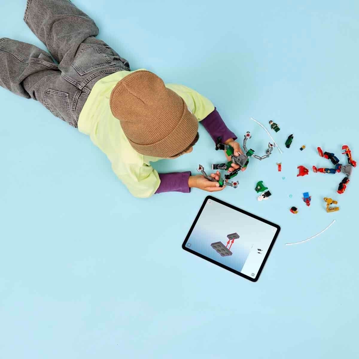Her iki robot da eklemli yapısıyla maksimum dinamik aksiyon sağlar ve açılan kokpitlere birer mini figür pilot yerleştirilebilir. Örümcek Adam Robotu, Demir Örümcek tarzındadır ve 2 adet hareketli, düğmeyle çalışan mermi atıcısı bulunur. Doktor Oktopus Robotu’nun tam eklemli 4 dokunacı vardır. Ayrıca robotlara ve mini figürlere kolayca takılabilen 2 ağ halatı bulunur ve Ghost Spider’ın Doktor Oktopus robotunun gövdesine takılabilen askıları bulunur. Bu LEGO Marvel Örümcek Adam seti, harika bir hediyedir ve LEGO Builder uygulamasıyla çocuklar dijital talimatlarla modeli 3 boyutlu yakınlaştırarak, döndürerek ve ilerlemeyi takip ederek seti güvenle inşa edebilir. Yapım setinde 315 parça bulunur.