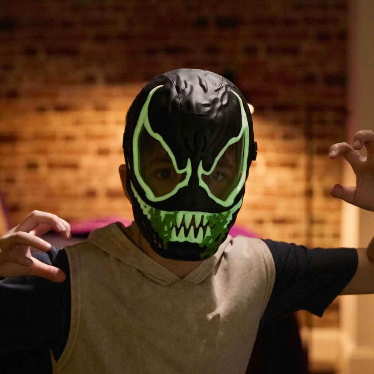 İster Venom evreninden en sevdiğin anları yeniden canlandırabilir istersen de kendi hikayelerini oluşturabilirsin. Maske, kenarındaki tuşa basıldığında çıkardığı 5 farklı ses ile sana daha gerçekçi bir oyun deneyimi sunacaktır. Kötüler sabah-akşam durmaz. Neyse ki maske karanlıkta parlıyor ve macera dolu bir eğlence için zaman fark etmiyor. Kahraman olmaya hazır mısın? Venom’a dönüş ve neler yapabildiğini herkese göster!